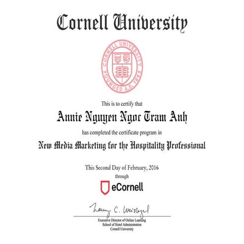 Cornell University Certificate New Media Marketing for the