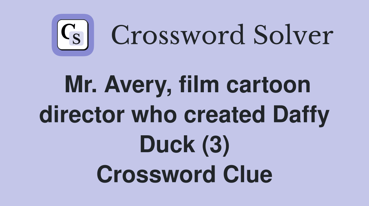 Mr Avery film cartoon director who created Daffy Duck (3) Crossword