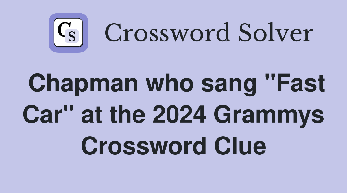 Chapman who sang quot Fast Car quot at the 2024 Grammys Crossword Clue