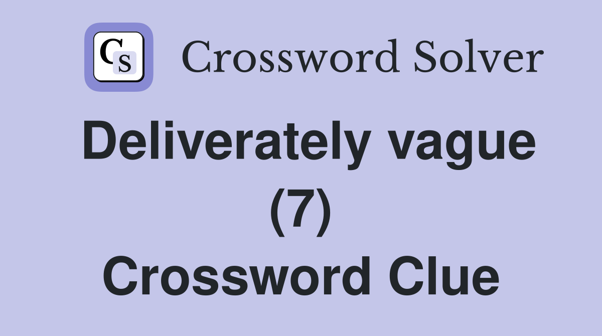 Deliverately vague (7) Crossword Clue Answers Crossword Solver
