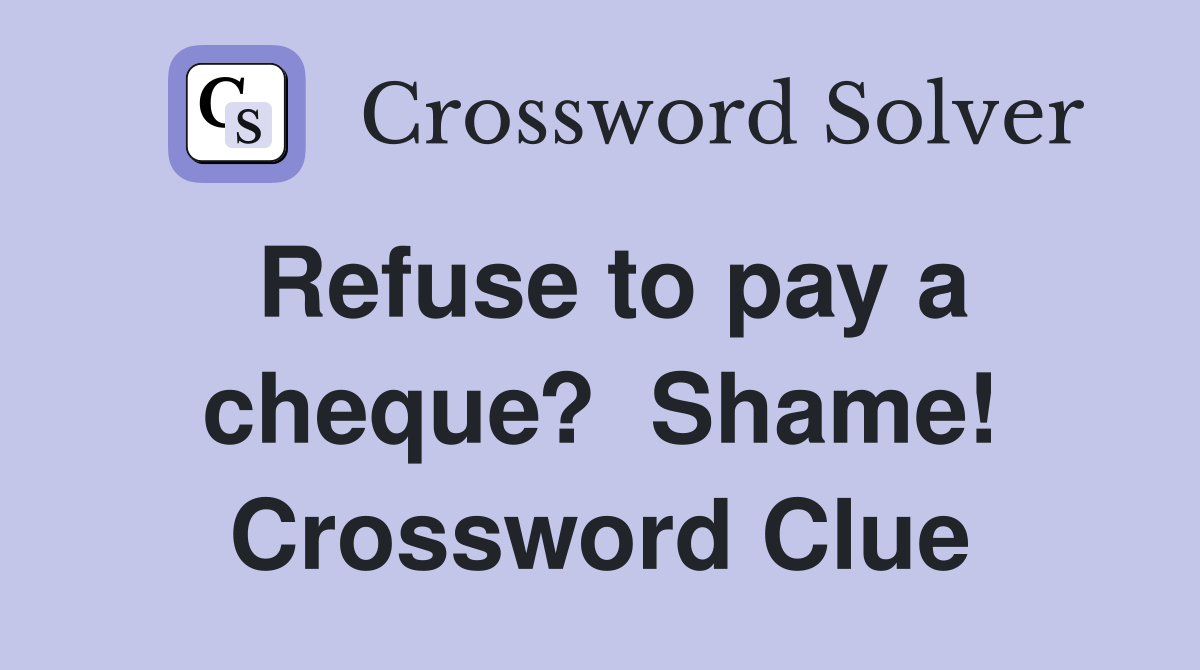 Refuse to pay a cheque? Shame Crossword Clue Answers Crossword Solver