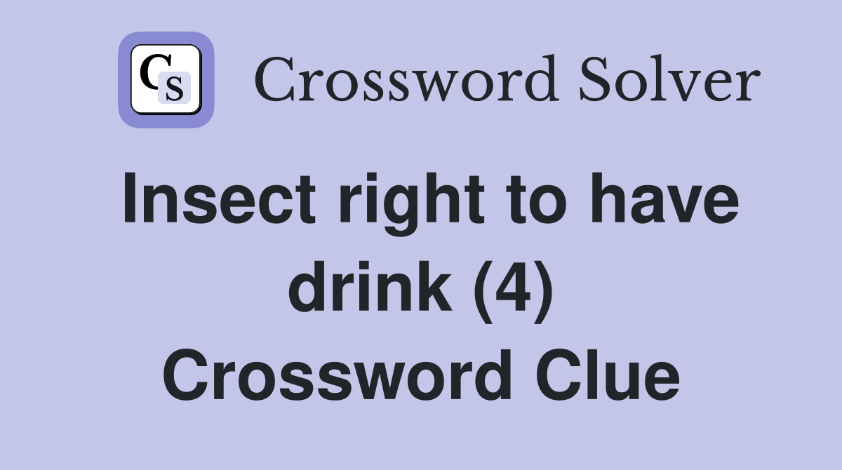 Insect right to have drink (4) Crossword Clue Answers Crossword Solver