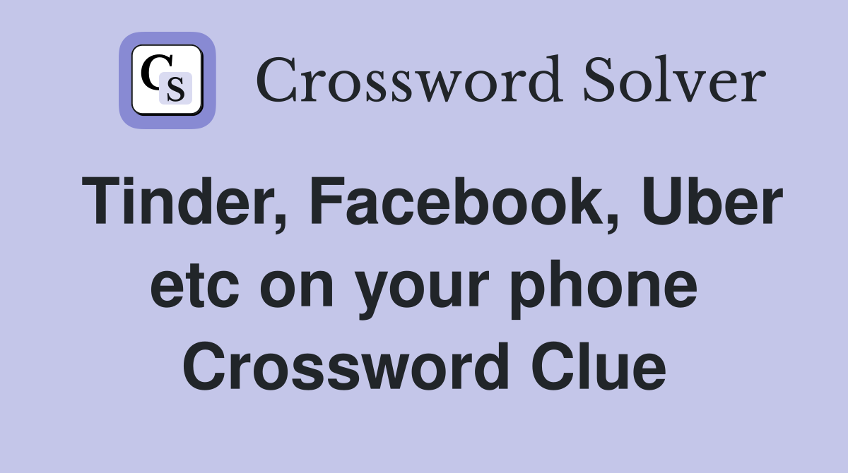 Tinder Facebook Uber etc on your phone Crossword Clue Answers