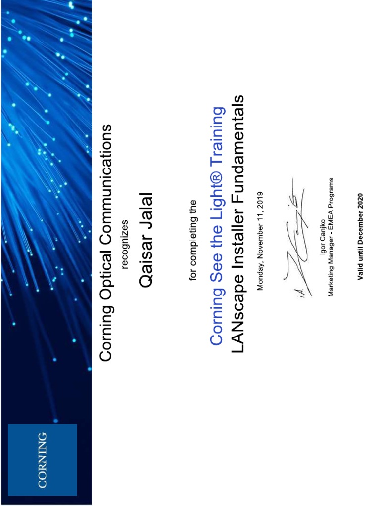 Corning Certificate PDF Telecommunications Industry Industries