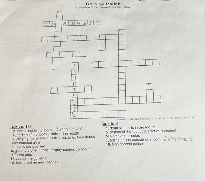 Solved Coronal Polish Complete the crossword puzzle below Chegg com