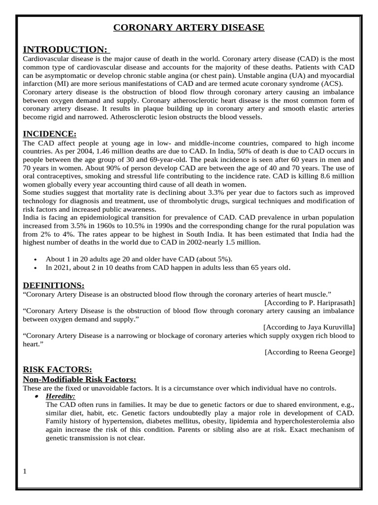 system disorder coronary artery disease med surg 1 pdf lOMoARcPSD