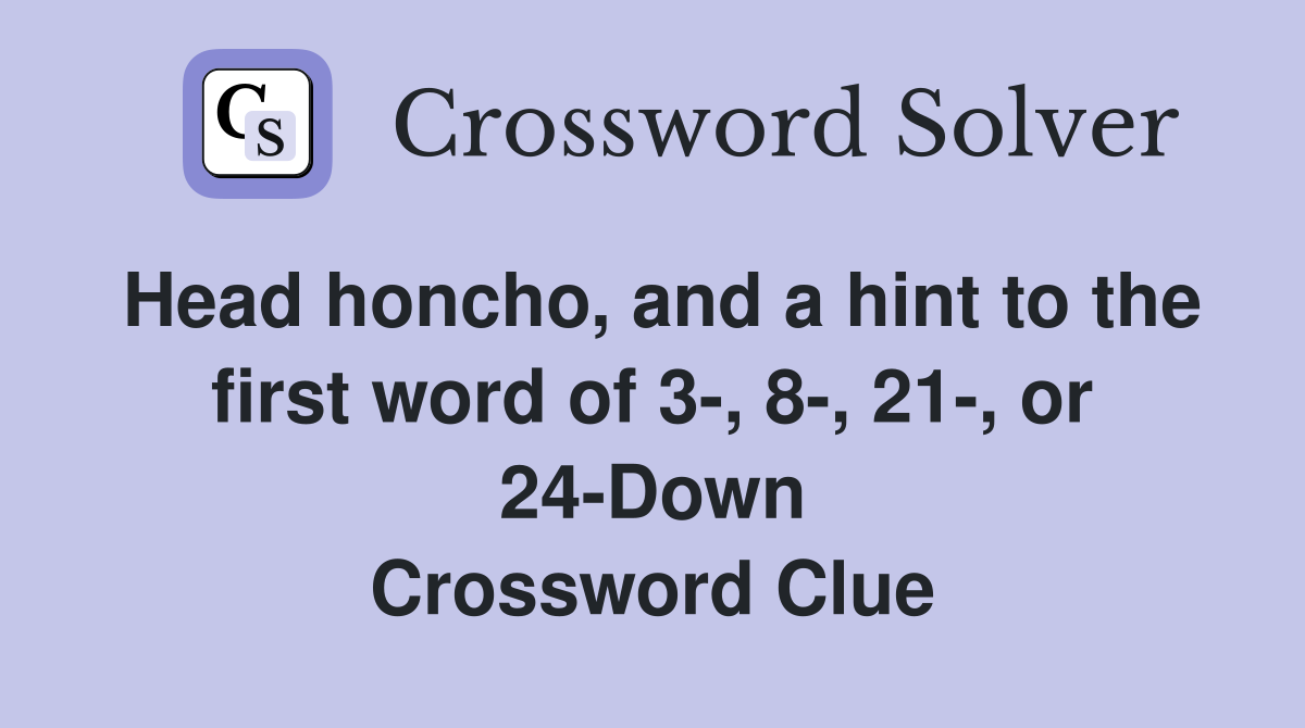 Head honcho and a hint to the first word of 3 8 21 or 24 Down