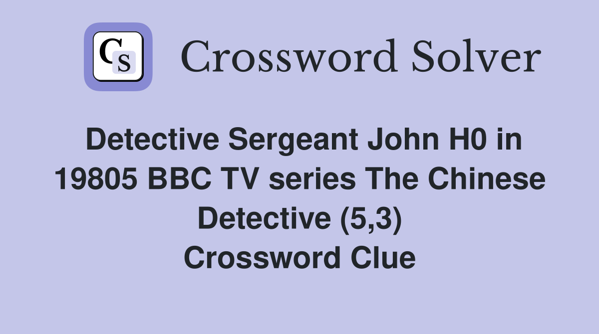 Detective Sergeant John H0 in 19805 BBC TV series The Chinese Detective