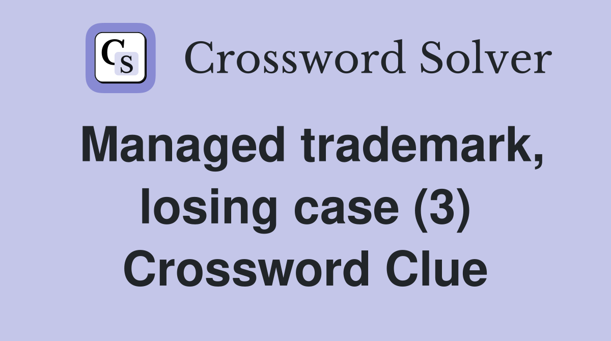 Managed trademark losing case (3) Crossword Clue Answers Crossword