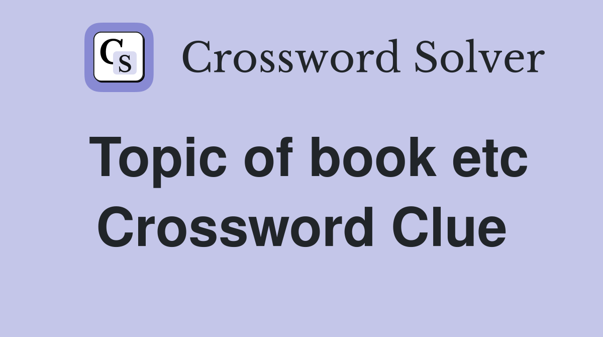 Topic of book etc Crossword Clue Answers Crossword Solver