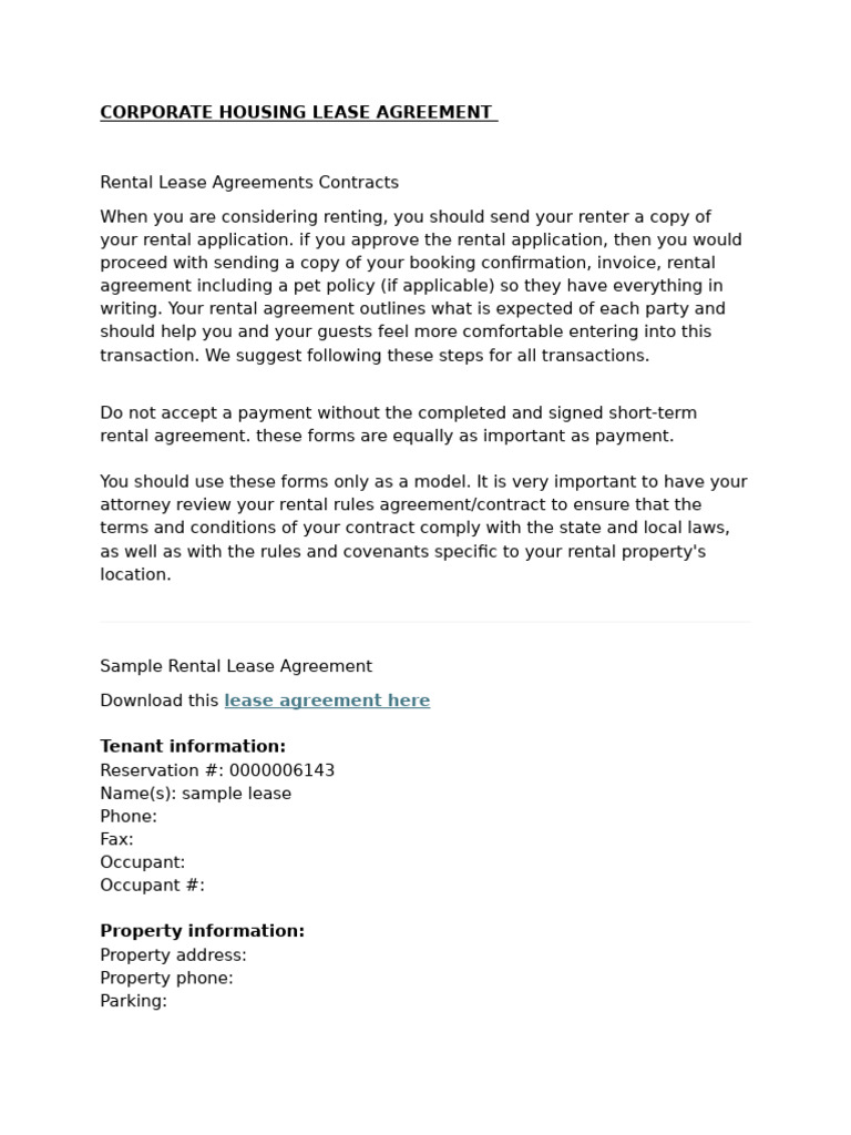 Corporate Housing Lease Agreement Template PARAHYENA