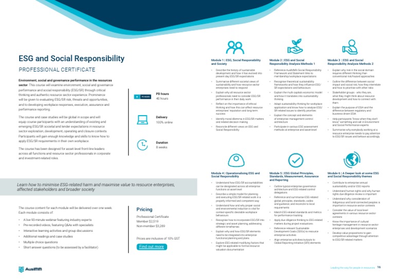 Professional Certificate in Esg and Social Responsibility Ausimm PDF