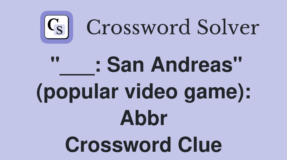 San Andreas quot (popular video game): Abbr Crossword Clue Answers