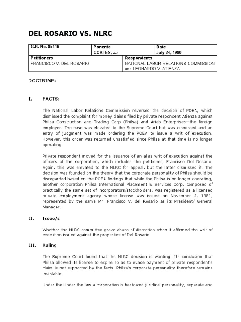 74 Del Rosario v NLRC PDF Corporations Supreme Court Of The