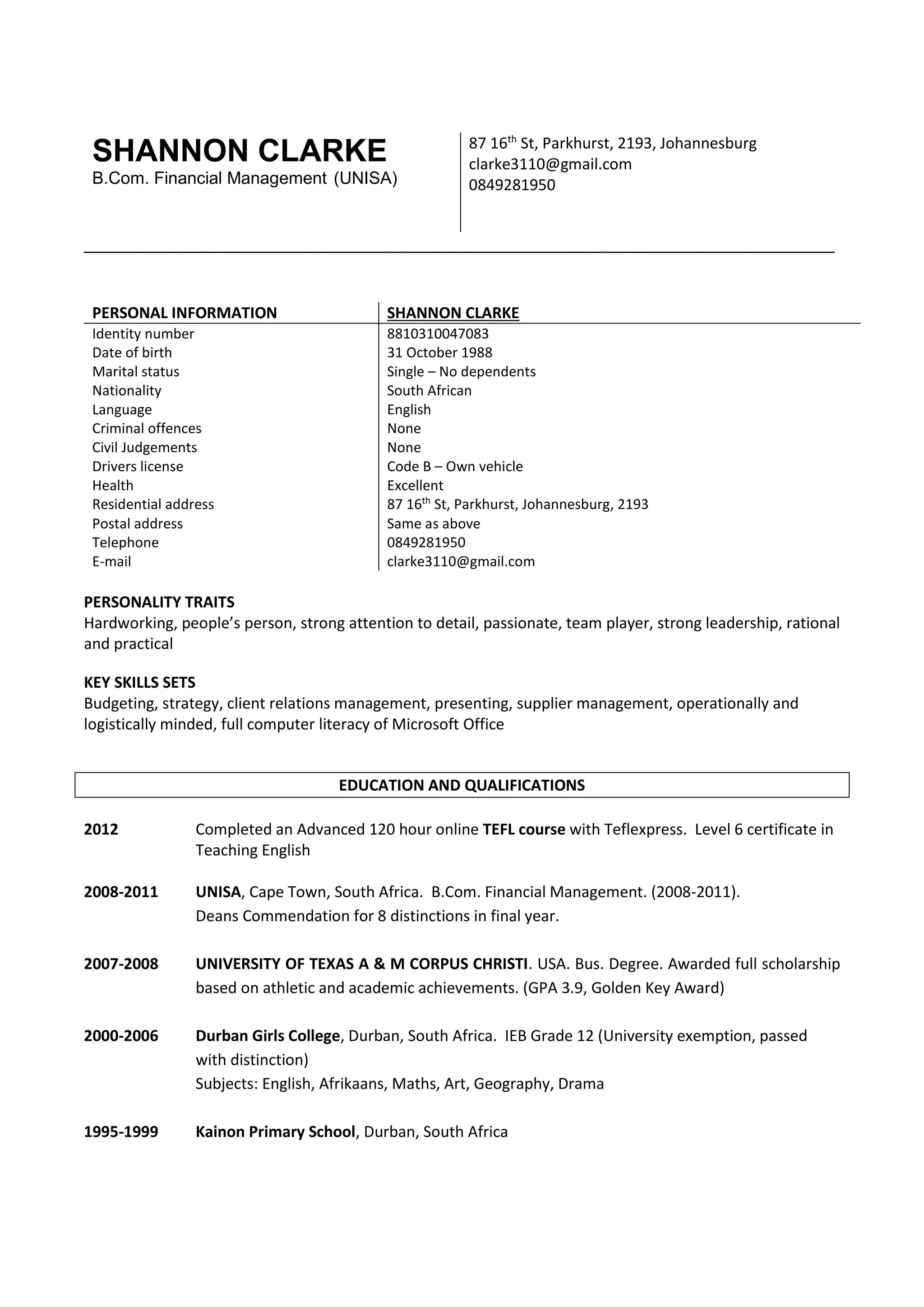SHANNON CLARKE CV OCT 2016 (1) PDF