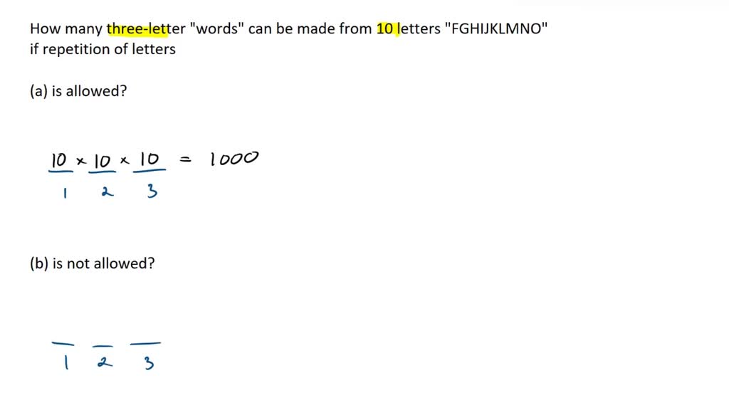 SOLVED: How many three letter quot words quot can be made from 10 letters