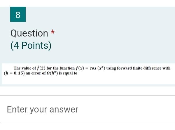 Solved 8 Question (4 Points) The value of f(2) for the Chegg com