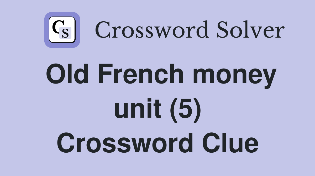 Old French money unit (5) Crossword Clue Answers Crossword Solver