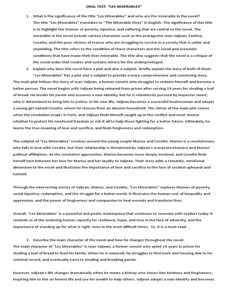 Les Miserables Summary PDF Cosette Marius Pontmercy