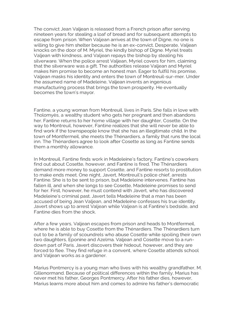 Les Miserables Summary PDF Cosette Marius Pontmercy