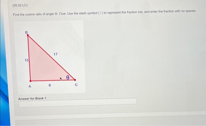 Solved Find the cosine ratio of angle Clue Use the slash symbol