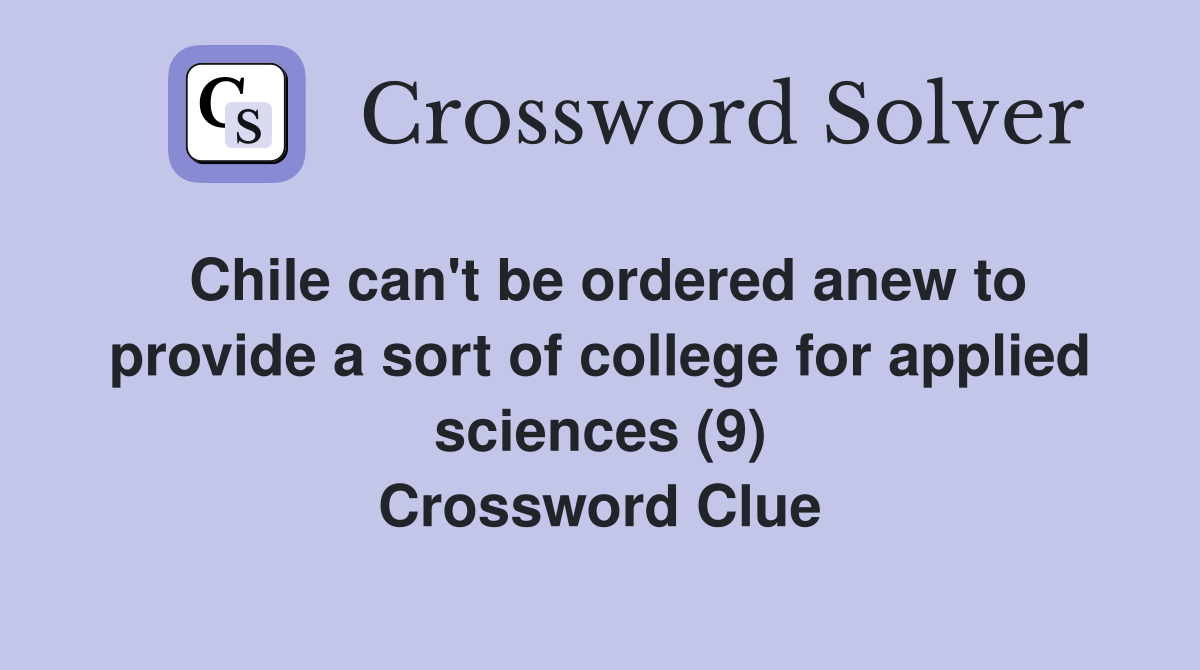 Chile can #39 t be ordered anew to provide a sort of college for applied
