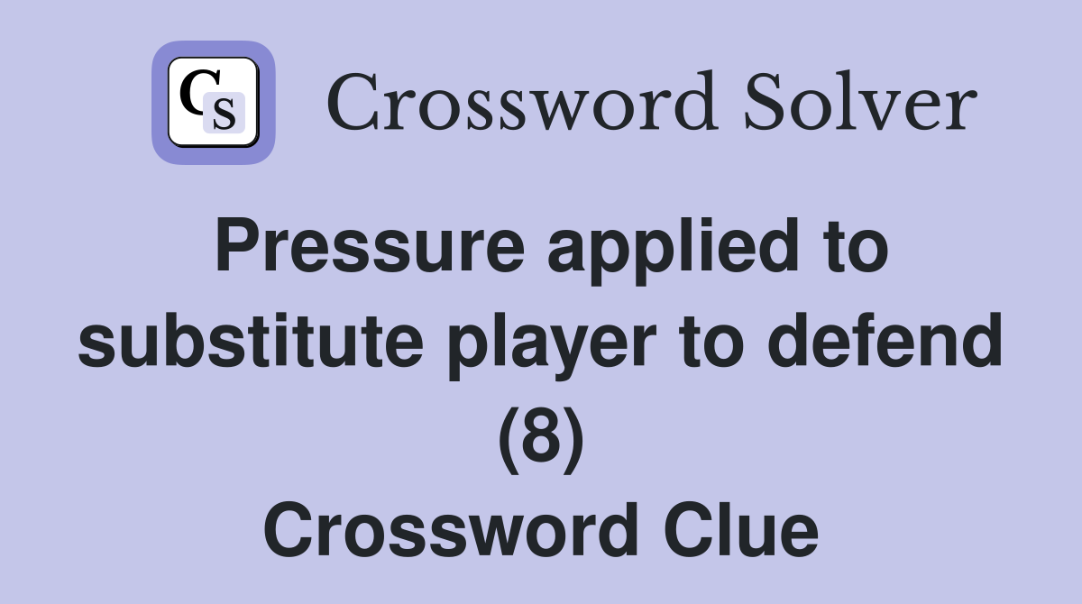 Pressure applied to substitute player to defend (8) Crossword Clue
