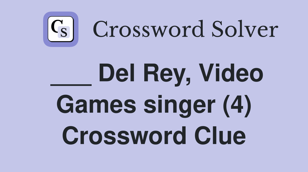 Del Rey Video Games singer (4) Crossword Clue Answers Crossword Solver