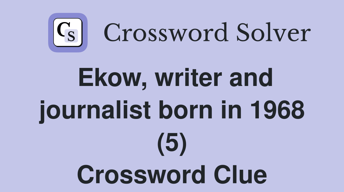 Ekow writer and journalist born in 1968 (5) Crossword Clue Answers