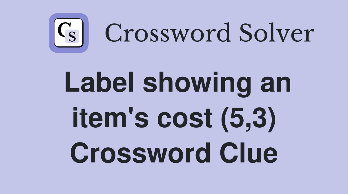 Label showing an item #39 s cost (5 3) Crossword Clue Answers Crossword