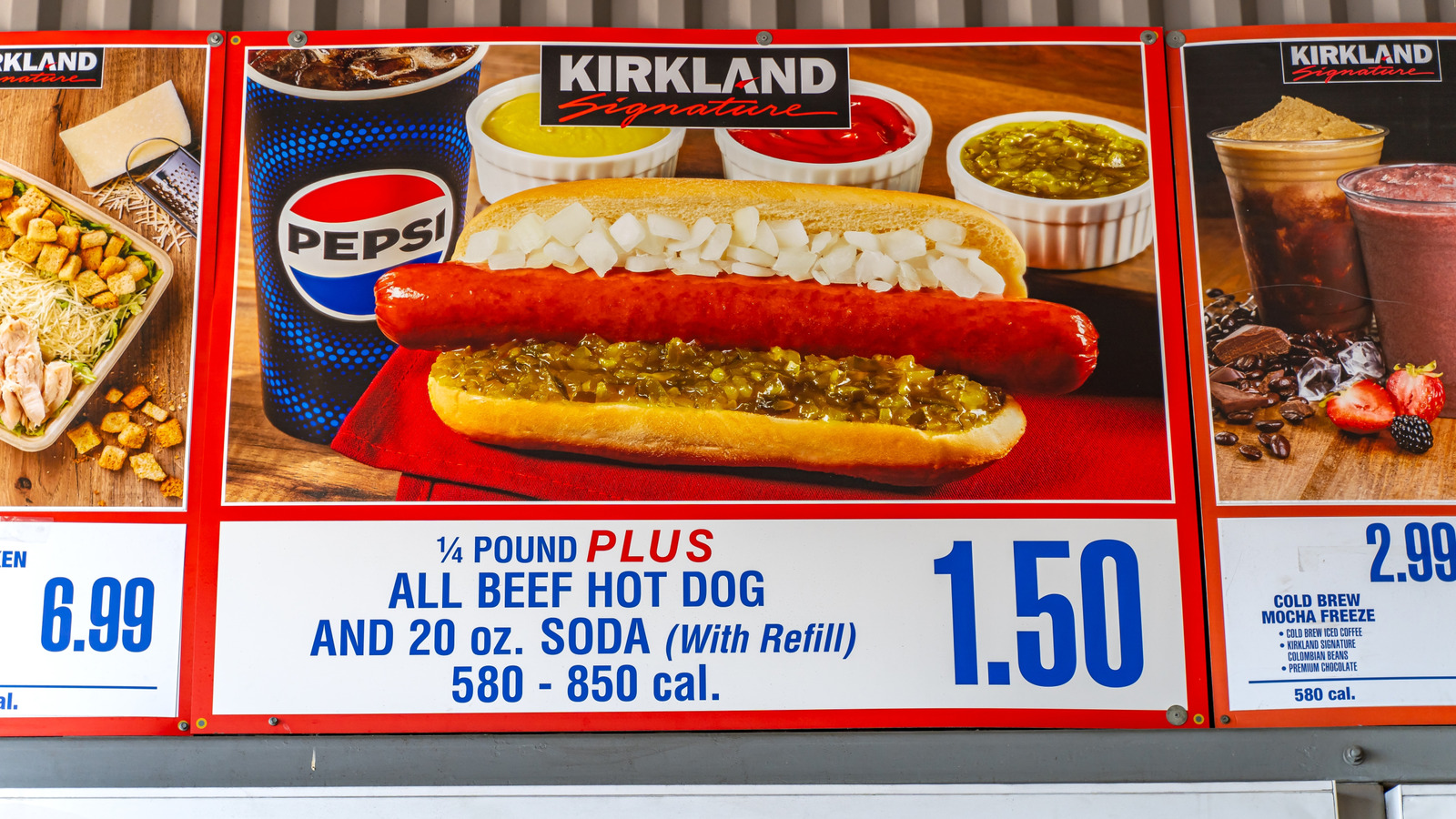 Hot dog photo at the Visalia CA Costco food court got updated to now