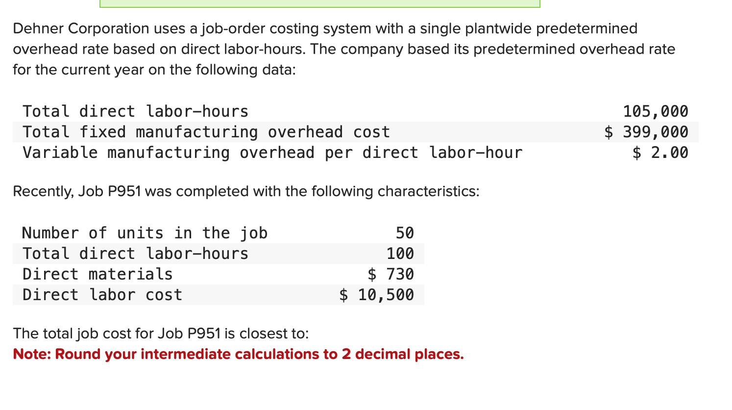 Solved Dehner Corporation uses a job order costing system Chegg com