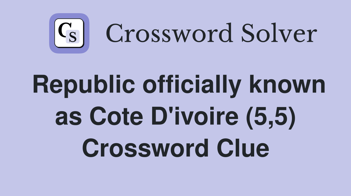 Republic officially known as Cote D #39 ivoire (5 5) Crossword Clue
