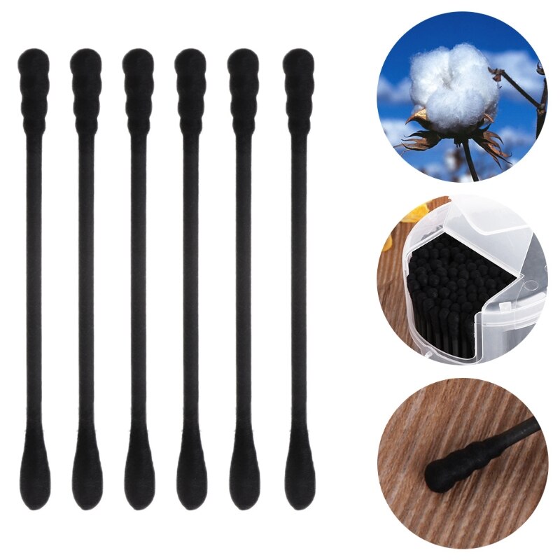 200Pcs Activated Black Anti bacterial Cotton Swab Vicedeal