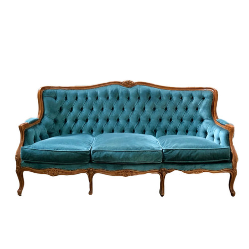 Louis XV Period Carved Beech Sofa or Canapé Upholstered in Teal Silk