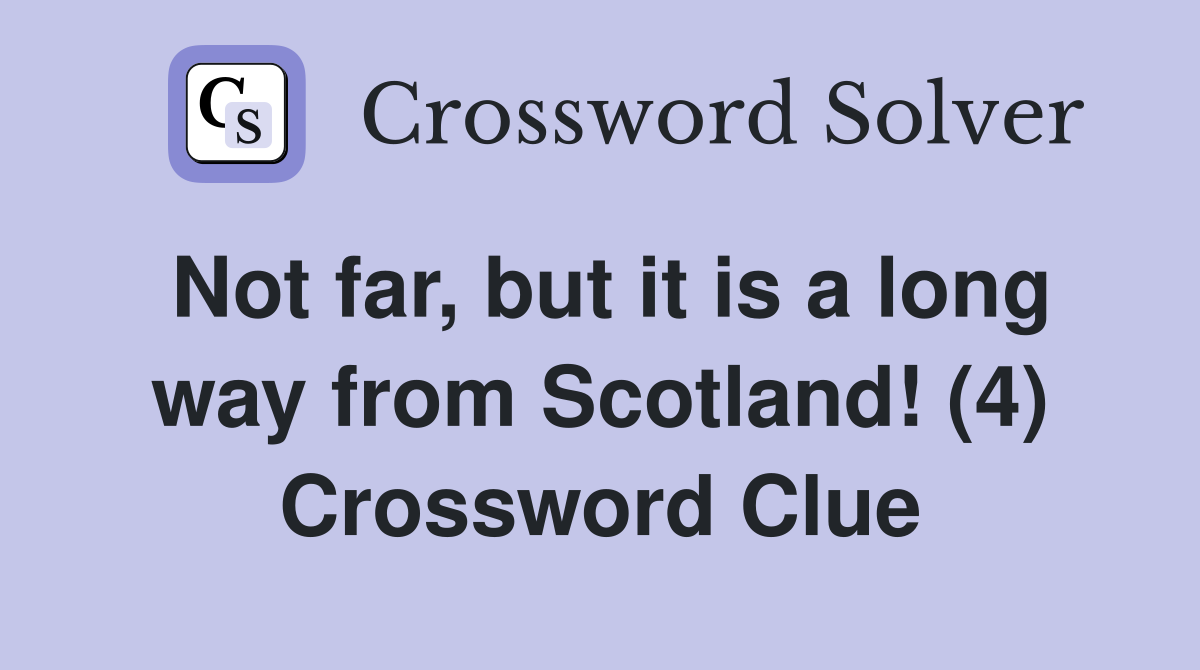 Not far but it is a long way from Scotland (4) Crossword Clue