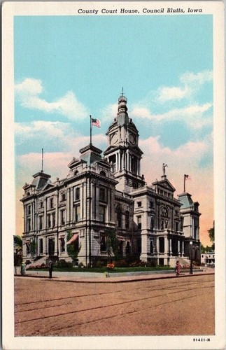 COUNCIL BLUFFS IA Postcard POTTAWATTAMIE COUNTY COURT HOUSE Curteich