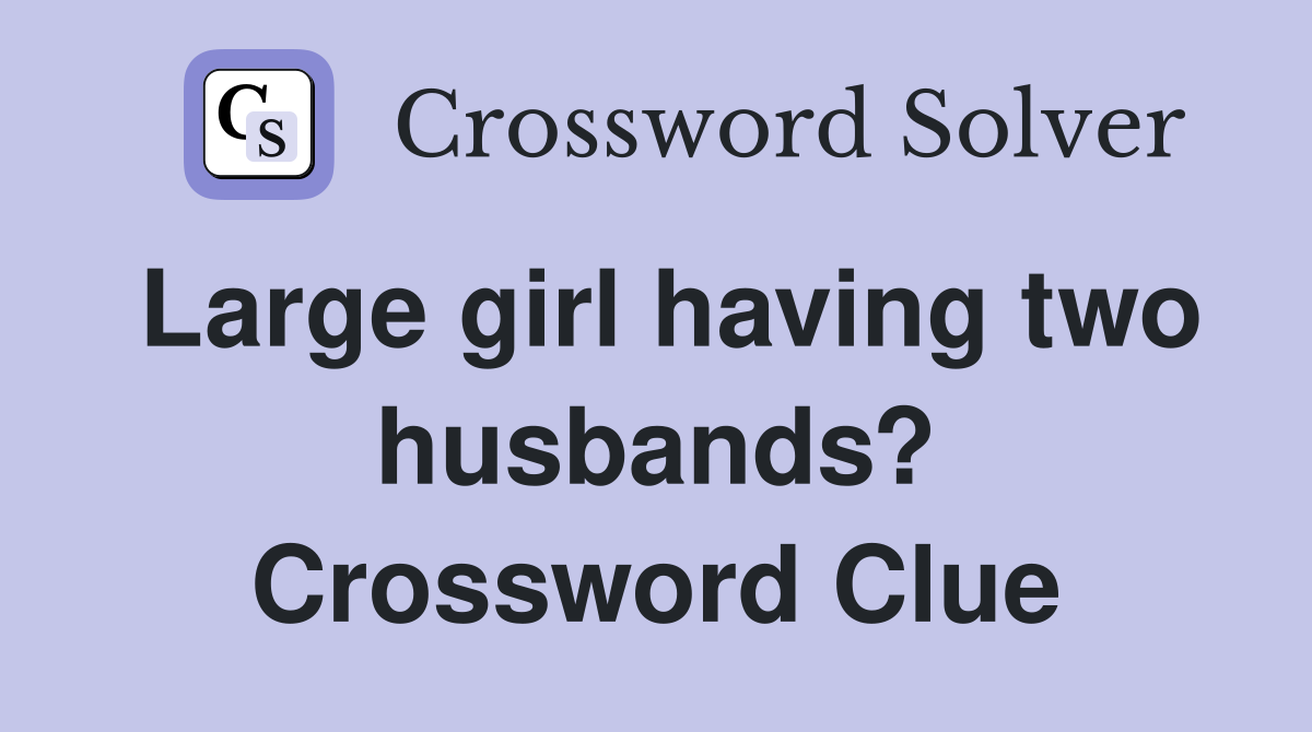 Large girl having two husbands? Crossword Clue Answers Crossword Solver