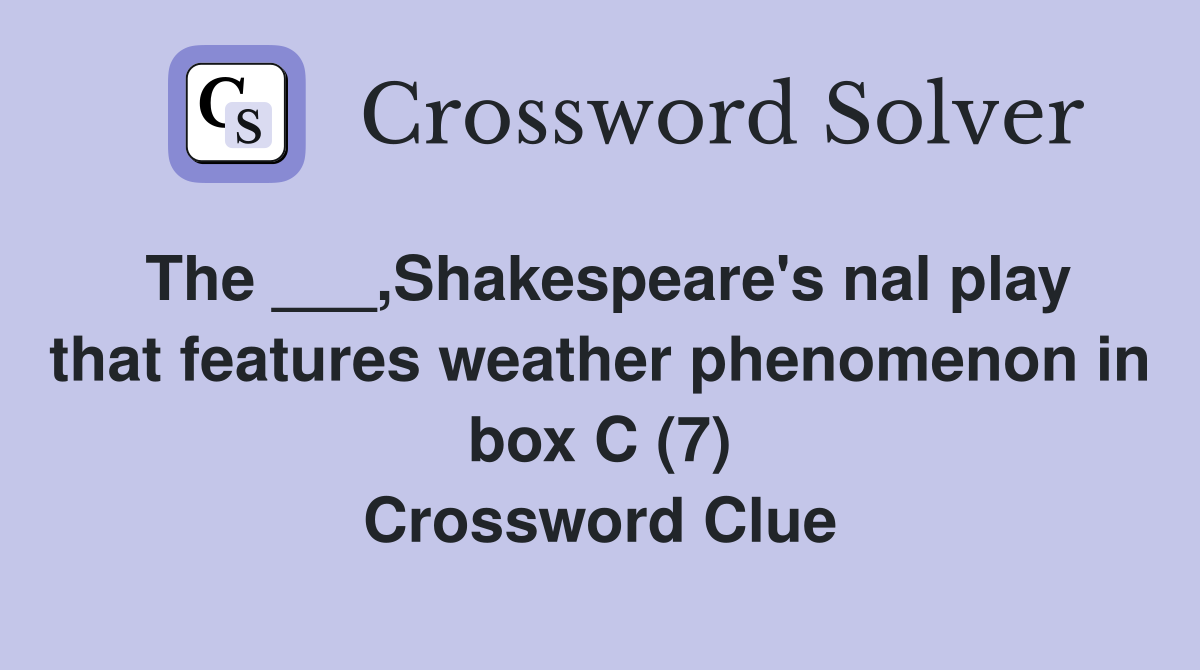 The Shakespeare #39 s nal play that features weather phenomenon in box