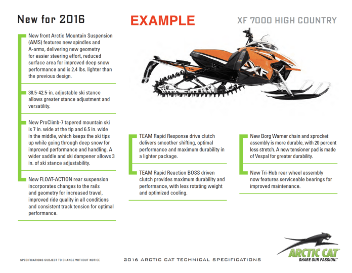 2016 ARCTIC CAT XF 7000 HIGH COUNTRY MODELS MEDIA KIT PDF ArcticInsider