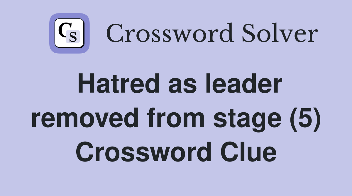 Hatred as leader removed from stage (5) Crossword Clue Answers