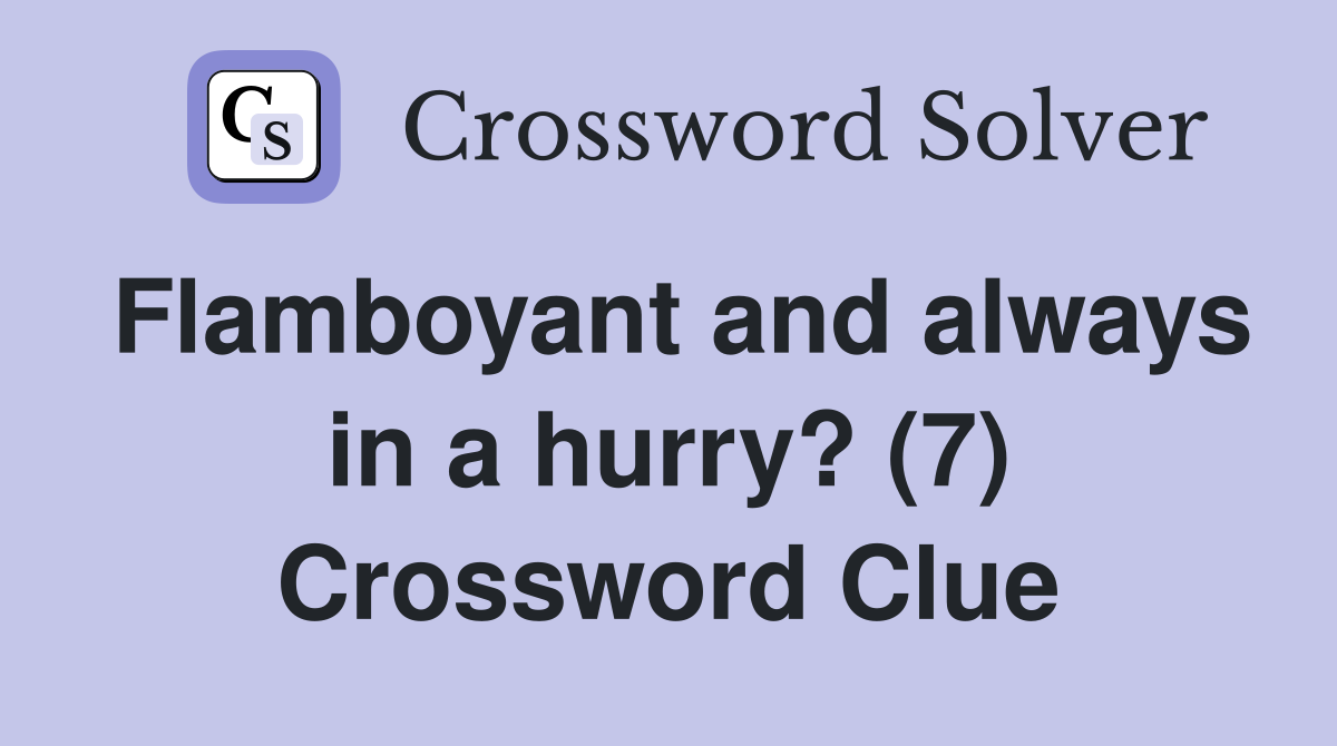 Flamboyant and always in a hurry? (7) Crossword Clue Answers