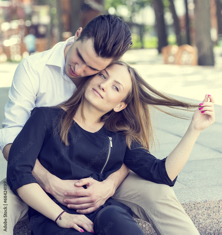portrait of a loving couple on nature in park Stock Foto Adobe Stock