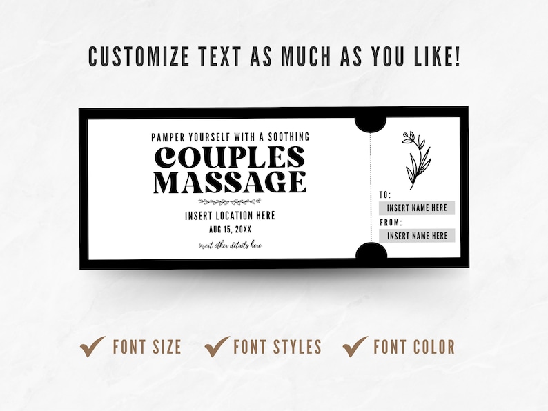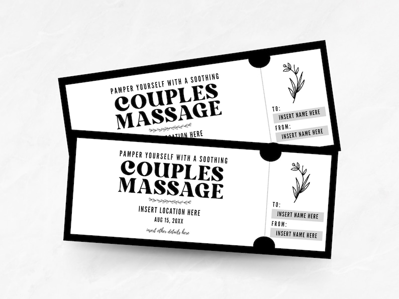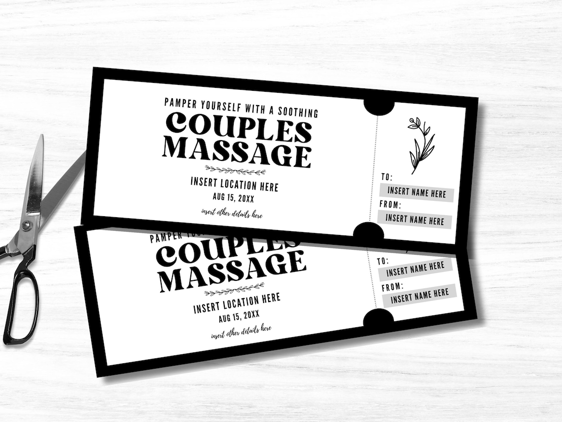 Massage Gift Certificate Template Couples Massage Gift Ticket Swedish