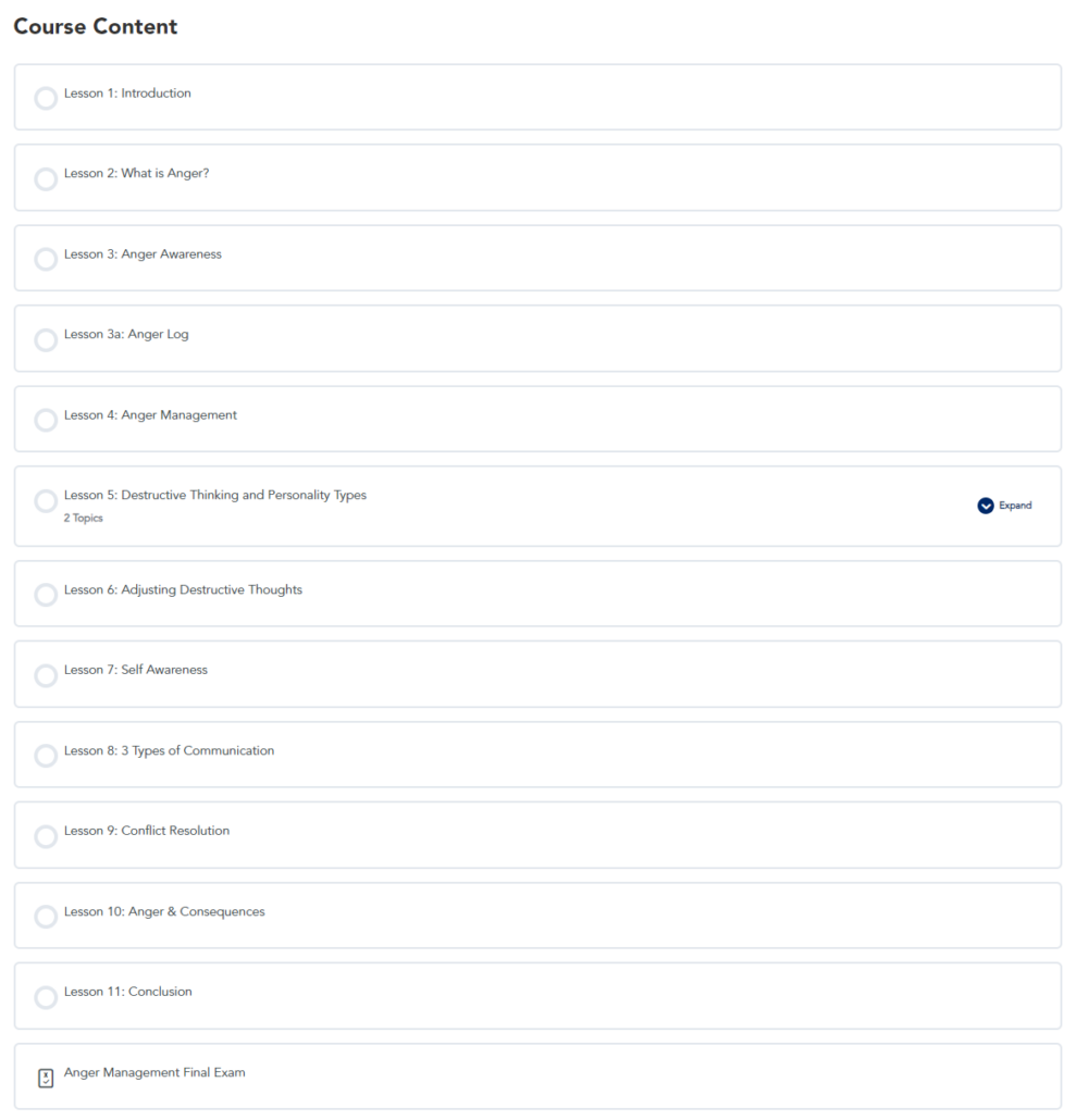 Online Anger Management Courses: 4/8/12/24 Hour Court Ordered Anger