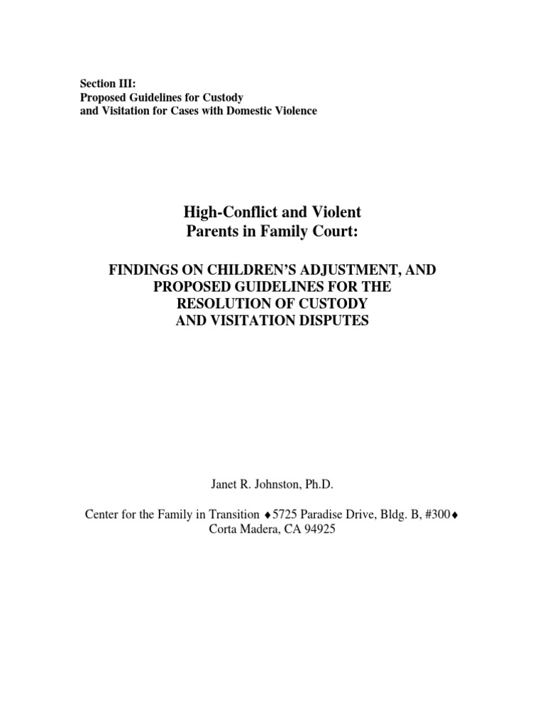 High Conflict and Violent Parents in Family Court PDF Child Custody