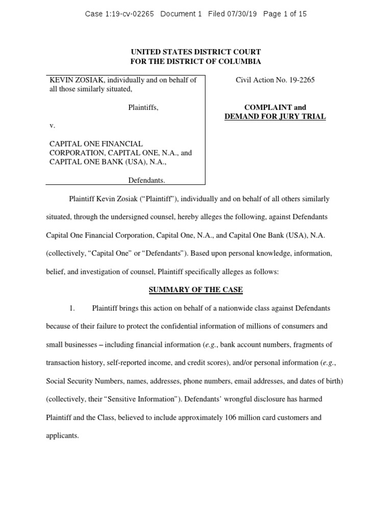 Capital One Lawsuit PDF Identity Theft Class Action