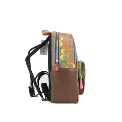 Coach (ca140) Court Signature Rainbow Logo Khaki Multi Medium Backpack