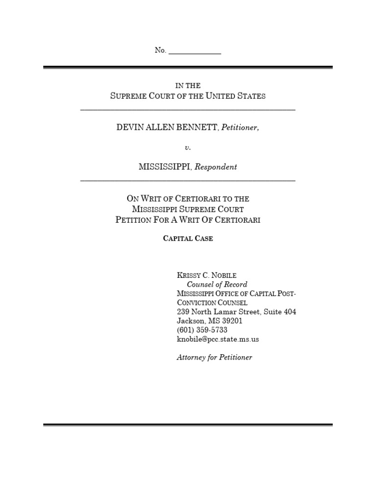 Devin Bennett Supreme Court petition PDF Gregg V Georgia