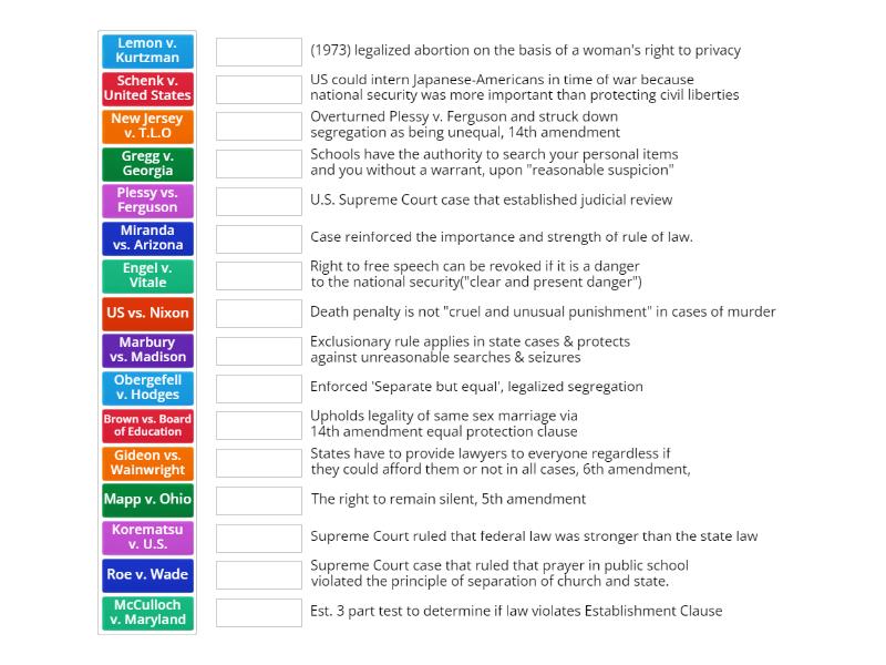 Landmark Supreme Court Cases Match up